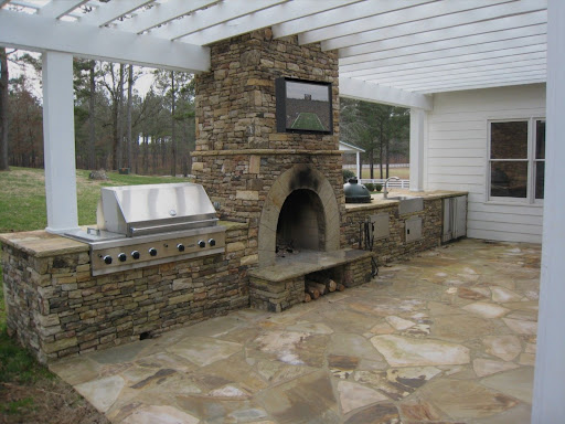 Pavestone RumbleStone Outdoor Stone Fireplace Kit at Home Depot. And for homeowners the ability to maximize outdoor entertaining space is also. Outdoor gas fireplace and pizza oven combo with lots of seating.